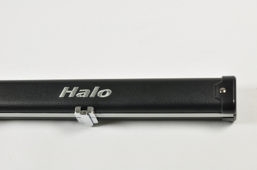 Halo cases are of aluminium construction and offer both maximum cue protection and superb looks. The exterior is upholstered with hard wearing leather look material to create a very attractive cue case. The hinge is an integral part of the shape of the case making it extremely robust. The catches are of the highest quality with a highly polished chrome finish. The interior is black flocked foam to hold the cue securely in place. Many players like this case as holding just one cue it is very thin and easy to handle. If you would prefer a wider Halo case that will also hold screw in extensions (or even two cues) see 2593-BLA.